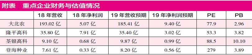 目前而言,种业领域主要的龙头企业包括大北农、隆平高科、荃银高科、登海种业等。