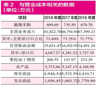 2017年其主营业务成本金额为8.68亿元,其中原材料所占比例为73.35%,由此可以核算出其当年材料成本金额为6.37亿元。而当年该公司的采购总额为7.85亿元,扣除735.50万元的能源费用后,则材料采购金额为7.78亿元。其中材料采购相较材料成本多出1.41亿元,理论上应当导致其存货有相同规模或者更高金额的增加,然而从其存货账面余额数据来看,其当年仅增加了2001.71万元,相较理论金额仍然存在1.25亿元的差距。
