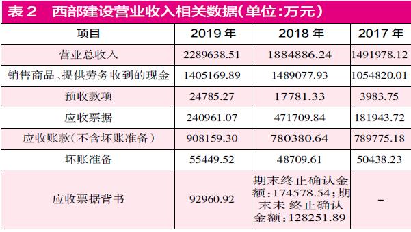 若暂且不考虑西部建设的增值税因素影响,将同期的未含税营收与现金收入数据勾稽,则可发现2018年至2019年未含税总营收比现金收入分别多出40.96亿元和89.15亿元(若考虑到增值税因素,这一差额还将有所放大),理论上,同期的应收款项至少也应该新增这些金额。