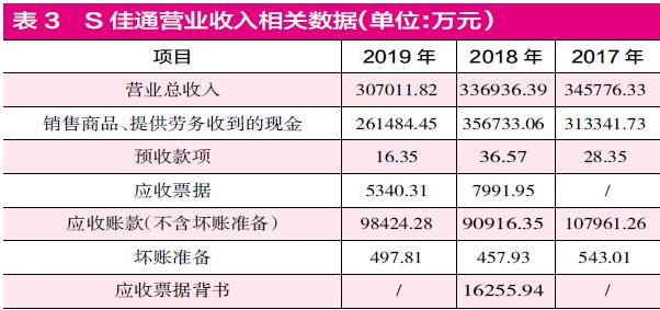 若将未含税总营收与现金收入数据勾稽,则2019年未含税总营收比现金收入多出4.55亿元,即理论上同期的应收款项应该新增约4.55亿元(若考虑进增值税率因素,应收款项新增的金额应比4.55亿元还要多)。然而,在2019年的资产负债表中,S佳通的应收账款(包含坏账准备)、应收票据合计为10.43亿元,仅比上一年略微增长4896万元,很显然这一数据与理论金额相差甚远,差异值达到4.1亿元左右。
