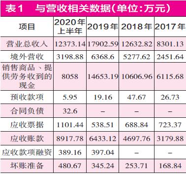 据招股书显示,2020年上半年腾景科技的营业收入为1.24亿元,其中境外收入为3198.88万元,这部分营收不需要考虑增值税问题,剩余部分的营业收入所适用的增值税税率为13%,由此可以计算出当期腾景科技的含税营收为1.36亿元。理论上,该部分含税营收应当体现为同等规模的现金流入和相关经营性债权的增减。