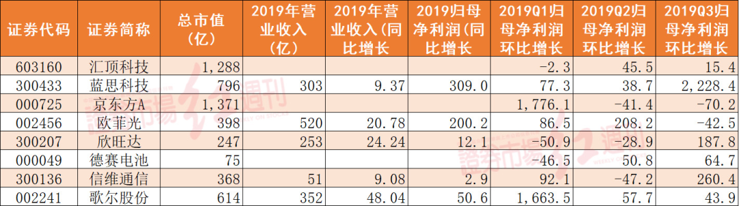 上述部分公司已经成为全球消费电子龙头的核心供货商,例如盖板玻璃提供商蓝思科技,精密制造龙头立讯精密等,这些公司通过为华为、苹果、三星、OPPO、VIVO和小米等主流厂商提供零部件,从消费电子更新换代的产业红利中受益,2019年相关供应商营收同比、净利环比获得加速成长。