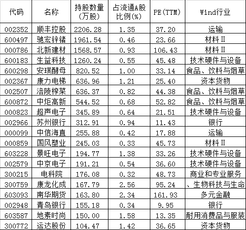 以QFII四季度新晋十大流通股东的上市公司为例,Wind统计显示,截至4月13日数据,34家四季度成为QFII“新宠”,其中,四季度新进前十大流通股东,且增持500万股以上的有8家,分别为顺丰控股、生益科技、涪陵榨菜、中炬高新、安琪酵母、驰宏锌锗、北新建材、康力电梯,其最新平均市值为552.65亿元,顺丰控股最高约为2150亿元。