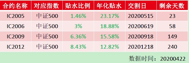 《证券市场周刊》作者获得的一份银河证券北京某营业部制作的“中证500期现套利”业务推介材料显示,目前中证500股指期货各个合约均有不同程度的贴水(股指期货价格<指数)。譬如截至4月22日,期货IC2005对应中证500指数贴水1.46%,交割日为5月15日、年化23.2%,期货IC2006对应中证500指数贴水3%,交割日为6月19日、年化19%。在交割日之前,如中证500指数上涨X%,则IC2005将上涨(X% 1.46%)。基于此,投资者可以做多IC2005,做空中证500指数(或成分股)。