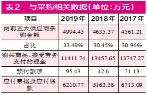 除了营收数据之外,据《证券市场周刊》作者核算,2018年和2019年超捷股份采购数据和现金流及相关经营性债务之间的勾稽关系亦存在令人费解的地方。