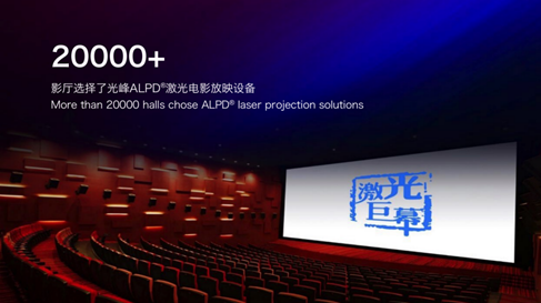目前,ALPD®激光显示技术经过十多年的发展,已经从1.0版本发展到4.0版本,成为全球激光显示市场应用最广泛的技术和标准。在海外最高端显示市场,至少超过3000家数字影院放映厅采用ALPD®影院放映设备,全球数字影院行业巨头巴可更是将ALPD®作为核心光源发展方向,而在国内,采用光峰科技ALPD®放映设备的影厅目前已超过20000家。