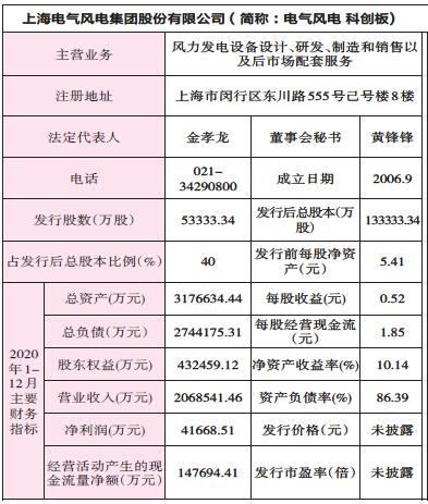 发行概览:公司本次公开发行新股不超过53333.34万股,占发行后总股本的比例不超过40%。最终募集资金总量将根据实际发行股数和询价情况予以确定。本次发行及上市的募集资金扣除发行费用后,将投资于“新产品和技术开发项目”“上海电气风电集团山东海阳测试基地项目”“后市场能力提升项目”“海上风电机组柔性化生产技改项目”“陆上风电机组柔性化生产技改项目”“补充流动资金”。