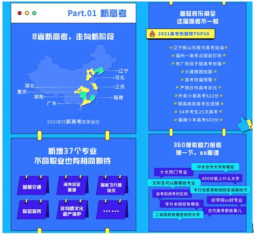 近日,全国各地高校开始陆续公布录取分数线,考生和家长的高考相关信息搜索需求也随之上涨。为此,360搜索携手央广网,针对考生和家长关心的话题,发布了《360搜索2021报考大数据报告》(以下简称报告),帮助广大考生和家长及时了解今年高考报考热点。据悉,“青云守护”计划,是360搜索推出的,通过高考信息服务、高考院校库、AI 报考院校pk 等工具和服务,为广大考生专门提供的全链路保驾护航计划,具有一定的专业性和针对性。