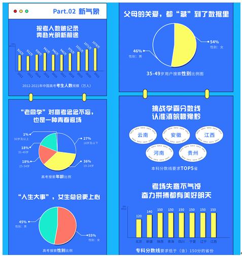综上所述,可看出这届考生不仅对新兴专业、科技前沿的专业关注度极高,对财经类、军事类、政法类等老牌传统类型院校也十分关注。同时,他们的报考自主性也正在加强,关注维度也更加广泛、更加务实,懂得结合就业单位性质、毕业去向等维度来综合看问题。