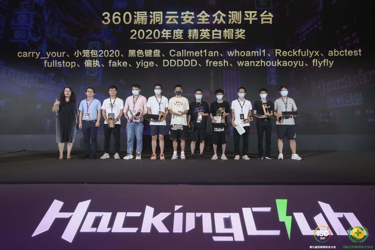 此外,HackingClub白帽峰会还举办了精英白帽颁奖典礼为部分白帽黑客们颁发亿万守护计划杰出贡献奖、2020年度巅峰白帽奖、2020年度精英白帽奖。