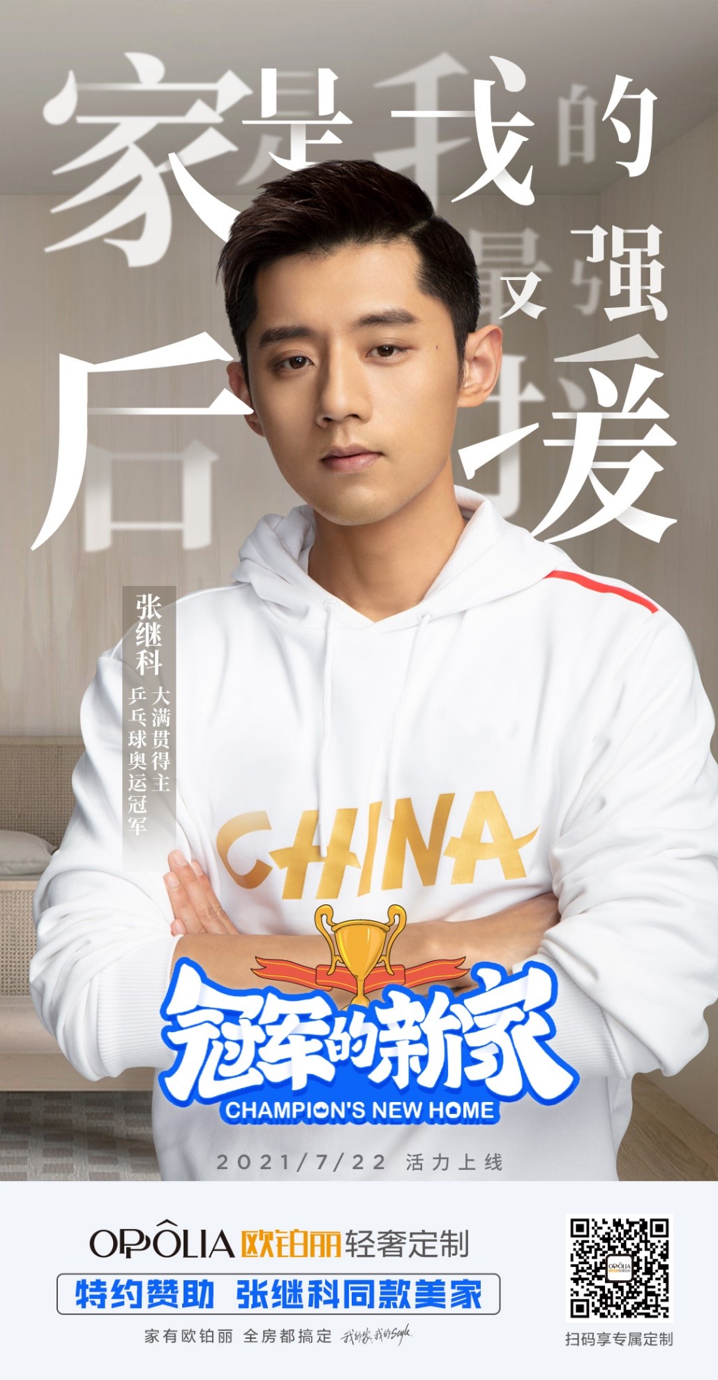 2021年7月,欧铂丽携手《冠军的新家》栏目开启轻奢美家改造,秉承“我的家,我的style”的年轻化品牌主张,为奥运大满贯张继科量身定制Me世代轻奢美家。随着节目播出,奥运冠军张继科回归生活后的另一面被挖掘和关注,全房定制品牌欧铂丽也因此成功破圈。