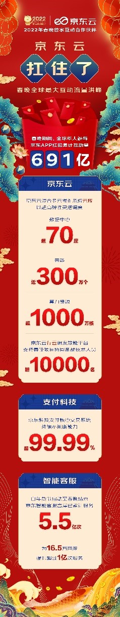 同时,数据显示,京东科技核心交易系统持续不间断能力超99.99%,具备极强的容灾能力及可观的吞吐量,平稳支撑春晚峰值流量,为用户提供安全、稳定、便捷的红包互动。
