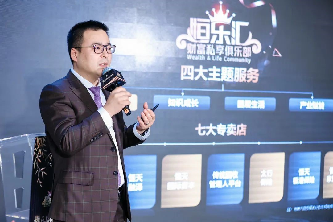 恒天财富股份高级副总裁、青岛恒天睿信家族办公室总裁宋辉对恒乐汇财富私享俱乐部的四大主题服务以及七大专卖店进行了介绍。他表示,恒乐汇·北京专会的成立标志着新财富体验时代的开启。