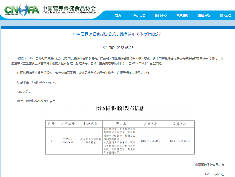 益生菌食品出新标准了!5月28日,中国营养保健食品协会发布团体标准T/CNHFA 006-2022《益生菌食品活菌率分级规范》,标准对益生菌活菌率进行分级。其中,只有益生菌食品中的益生菌活菌率大于等于50%,才能满足1级标准。该标准出炉将开启益生菌行业分级时代,消费者选购将多一个更清晰、直观的指引。