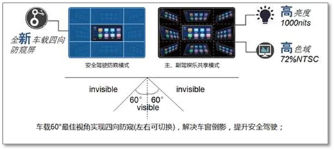 伴随智能汽车、智慧座舱的加速普及,人们也对汽车智能交互、视觉占用带来的驾驶安全隐患,提出了防干扰显示的新要求。今年5月4日,全球第二大汽车Tier1大陆集团表示,将推出副驾显示屏“隐私”功能,以避免副驾驶屏幕的娱乐内容和强光对驾驶者造成分心。车载防窥显示市场空间广阔。