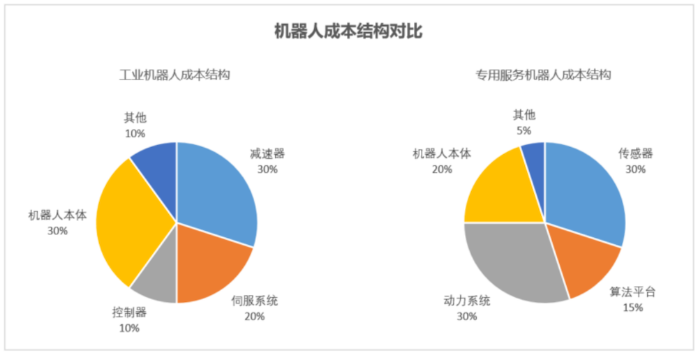 具体到成本端,与工业机器人60%的成本来自于动力系统(减速器、伺服系统、控制器)不同,专用服务机器人的核心成本来自于传感器(以激光雷达、摄像头、超声波雷达为主)及算法平台,占比可达40%~50%,而动力系统的占比仅在30%左右。未来,专用服务机器人的降本关键还在于激光雷达等核心传感器的价格下降及国产化。