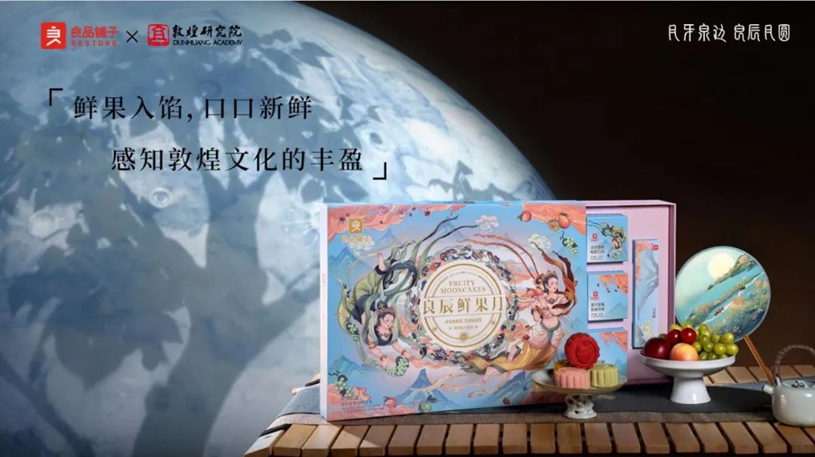 莫高窟著名的翼马、九色鹿等瑞兽及飞天神女形象,千年敦煌文化通过这些具象插画,活灵活现地通过敦煌IP月饼礼盒呈现在新生代消费者面前,讲述团圆老故事、焕发文化新光彩。每售卖一盒良品铺子敦煌IP月饼礼盒,敦煌文化的传播广度便扩大一轮。