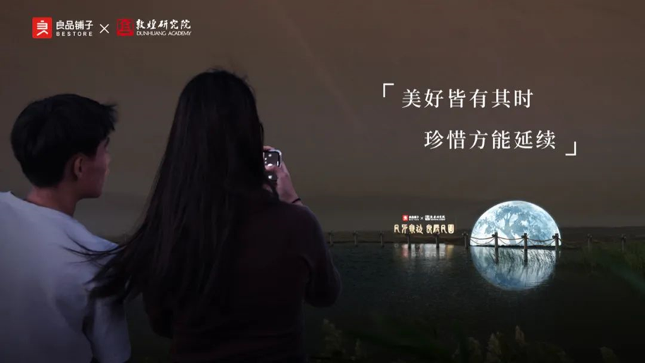 2022年中秋节,良品铺子举办“月牙泉边 良辰月圆”创意活动,并再次向中国敦煌石窟保护研究基金会捐款50万元,就是以身作则助力莫高窟风沙灾害防治,同时呼吁社会关注并保护千年敦煌文化。