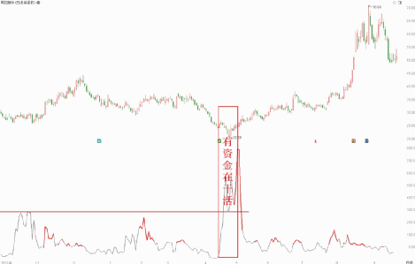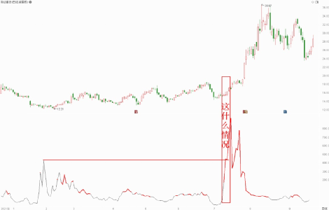 你看最近的一个强势股,低位横盘的时候,你很难直观的判断它到底是强还是弱,更很难看出到底有没有多头在主动或被动买入。见证奇迹的时刻到了,我们先看一只个股。8月31日-9月6日,股价小幅上涨,但是你看它的相对强度简直算是强劲拉升啊。这说明什么呢,莫非有资金在主动买买买。看看后面走势,9月15日涨停,次日完成了“波动率外包突破”,关于“波动率外包突破”,之前在《交流会》跟大家讲过,这是强轧空或者主升浪的必要条件,什么叫必要条件,就是股价走势在没过“波动率外包突破”这个坎的情况下,后续想走强势主升,门都没有。就像你想炖肉吃,连火都打不着,那你说能开锅炖熟吗?