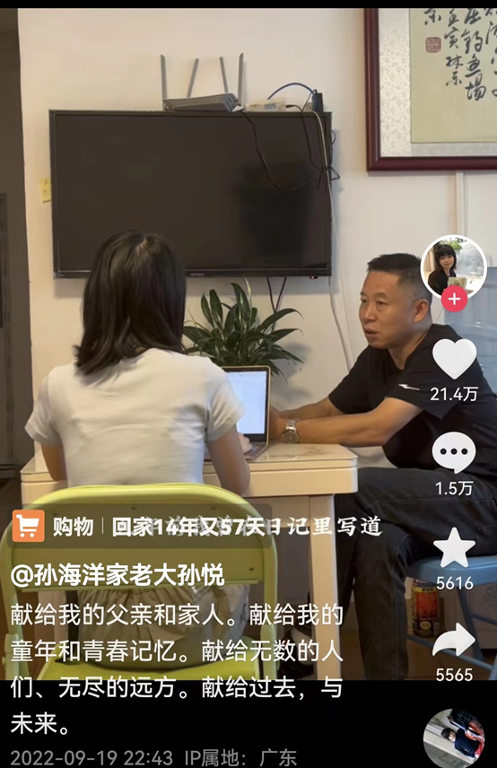 9月18日晚,《回家》在抖音京东教育文化图书旗舰店开启预售,网友纷纷涌入该书作者、孙海洋女儿孙悦的抖音橱窗进行预定,订单量很快突破1万;9月20日,《回家》不但成为京东旗舰销售第1名,更是成为抖音平台图书销售第3名,突破了6万本。9月21日,#孙海洋女儿出书记录父亲寻子14年# 的话题成为新浪微博热搜第七名;#孙海洋女儿出的书成热销书第1名#成为热议话题,当日,抖音京东教育文化图书旗舰店预售突破8万。