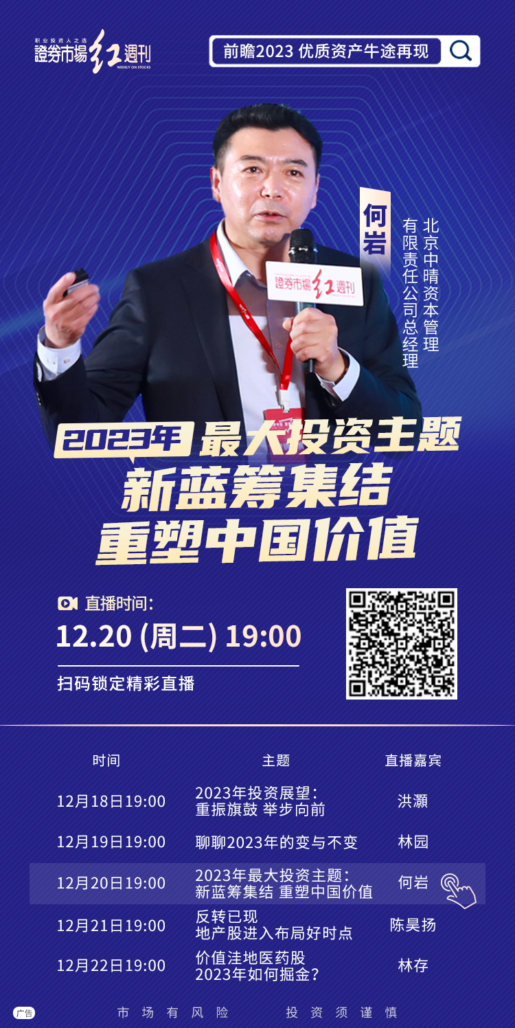 12月19日晚7点,《证券市场周刊》重磅企划的“前瞻2023 优质资产 牛途再现”线上投资策略会迎来第二位重磅嘉宾——《证券市场周刊》荣誉顾问、深圳市林园投资董事长林园。