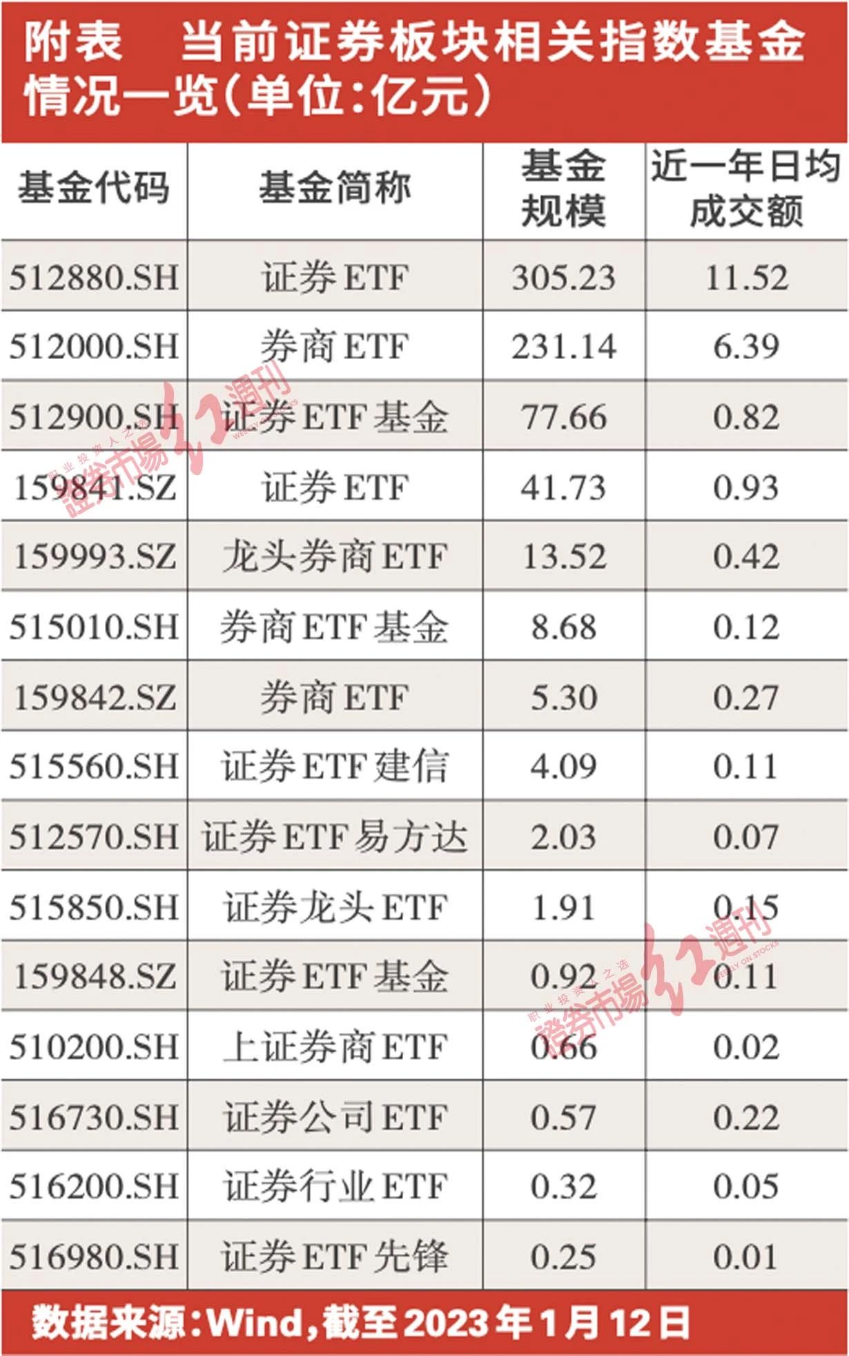 多因素共振,2023年年初证券板块行情升温。随着本轮疫情“达峰”,多地经济已经呈现快速复苏态势,A股市场交易量也逐渐企稳回升,叠加稳增长政策密集出台、疫情防控优化调整大幅提振经济复苏预期,市场情绪及风险偏好有望持续提升。