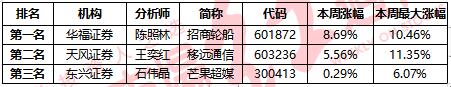 据统计,自上周末截止至本周周五收盘,上周机构荐股延伸解读所公布的6家上市公司中,共有3家实现上涨,其中居前的招商轮船、移远通信涨幅分别为8.69%和5.56%。