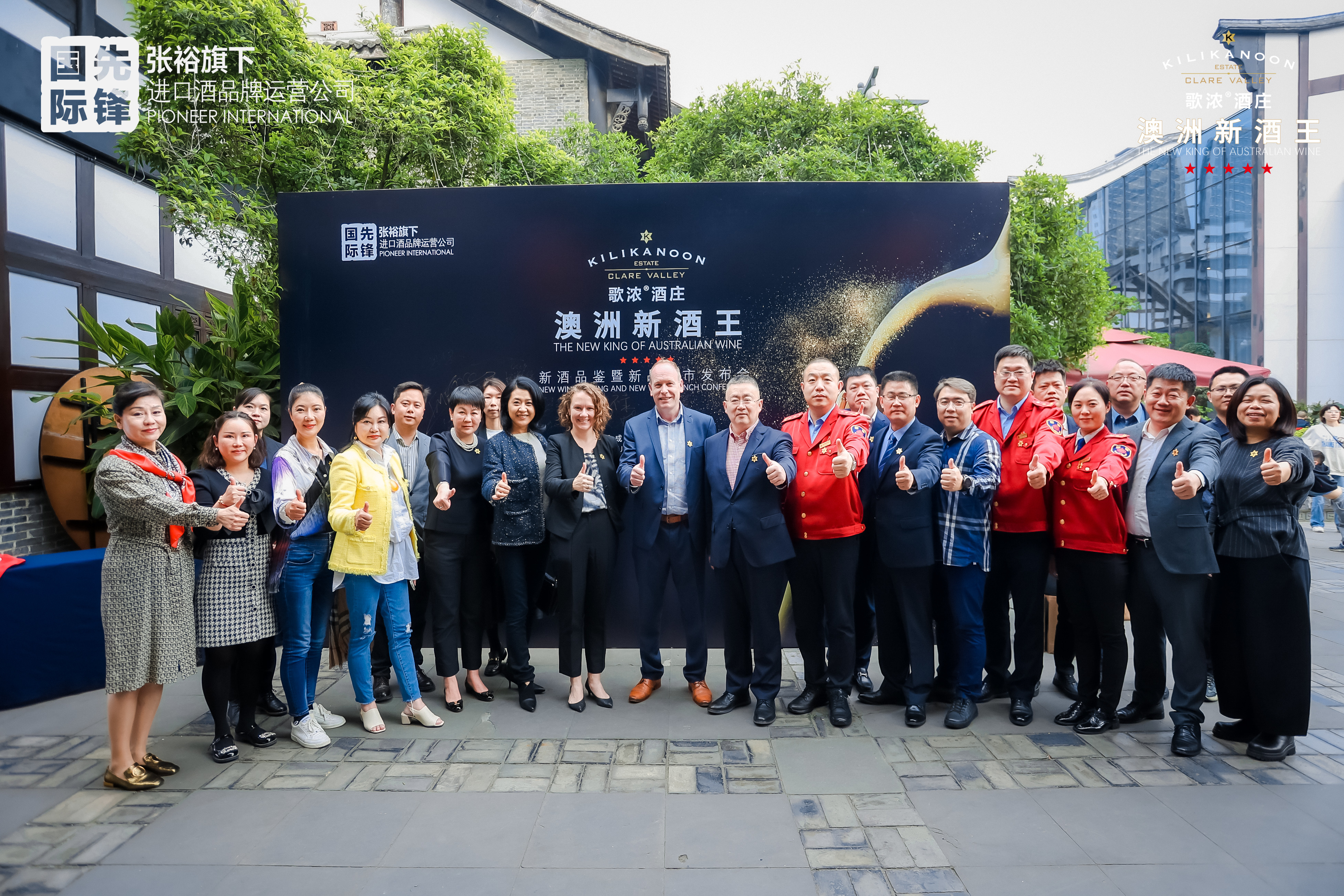 歌浓酒庄总经理崔维斯、澳大利亚成都领事馆副总领事NINA DYNON以及张裕股份公司总经理助理、张裕先锋国际酒业有限公司总经理刘世禄(从左到右)共同为歌浓皇冠新品揭幕