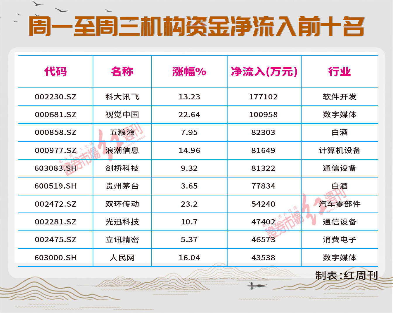 本周前三天机构资金关注股聚集于数字媒体、通信设备、IT与白酒等行业板块。