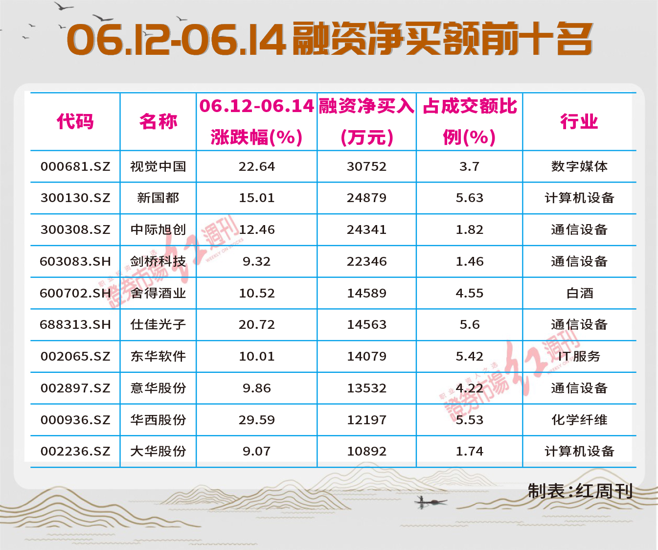 融资净买前十名中有4只通信设备股,3只IT股,与核心热点相匹配。