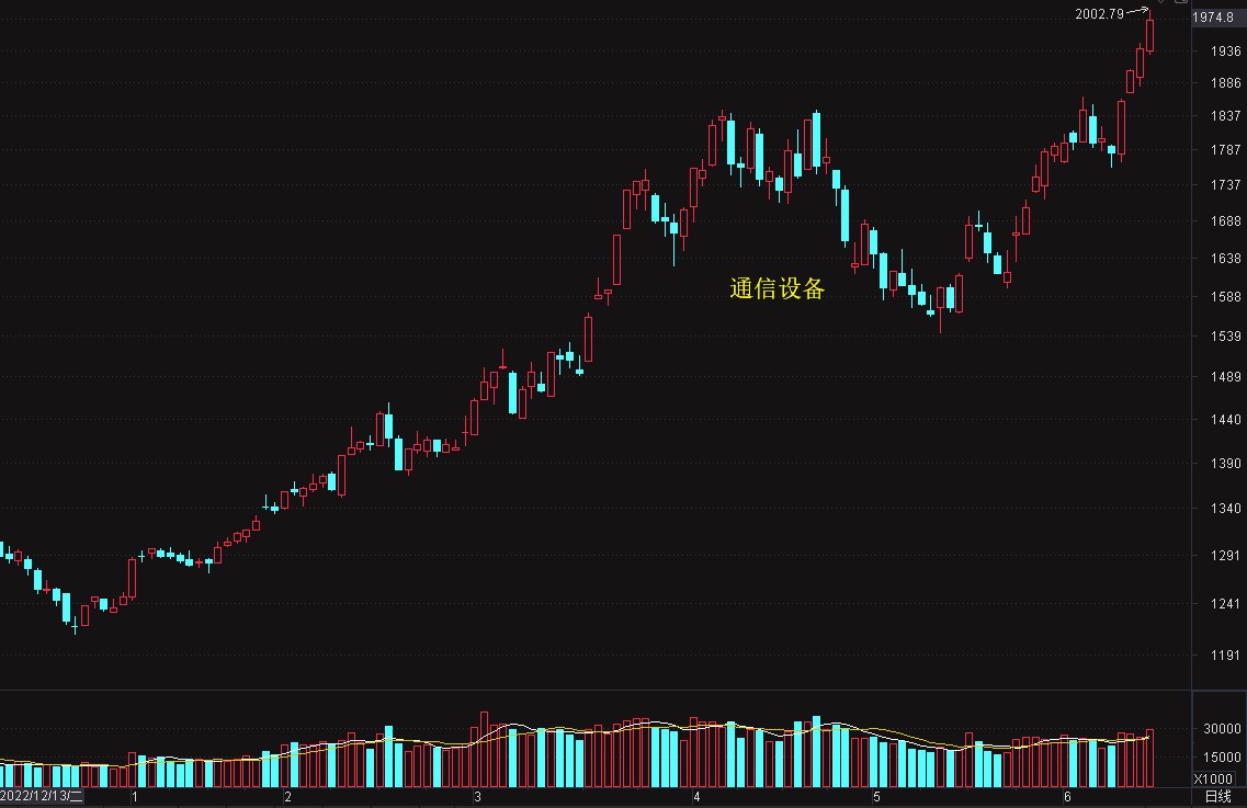 通信设备板块在主升浪中,是当下最活跃的题材板块,重点继续关注。