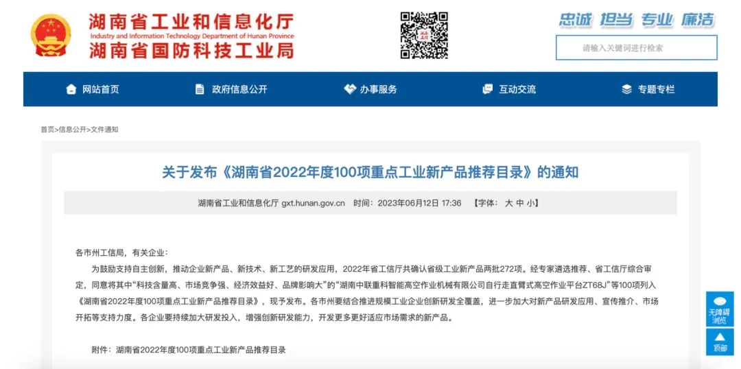 △湖南省工信厅发布《湖南省2022年度100项重点工业新产品推荐目录》