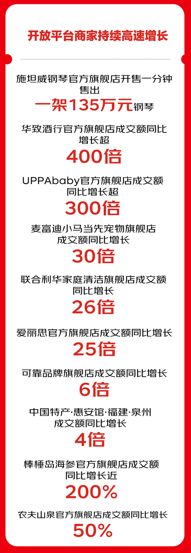 值得关注的是,京东超市开放平台商家表现亮眼,华致酒行官方旗舰店、UPPAbaby官方旗舰店等各类目品牌旗舰店均实现高速增长,展现出平台生态的繁荣与活力。